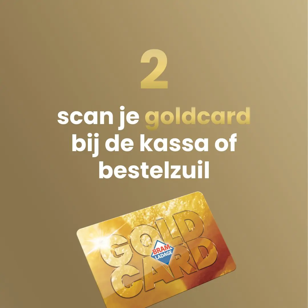 Scan je goldcard bij de kassa of op de bestelzuil. Bij iedere uitgegeven euro spaar je 10 goudstaven.